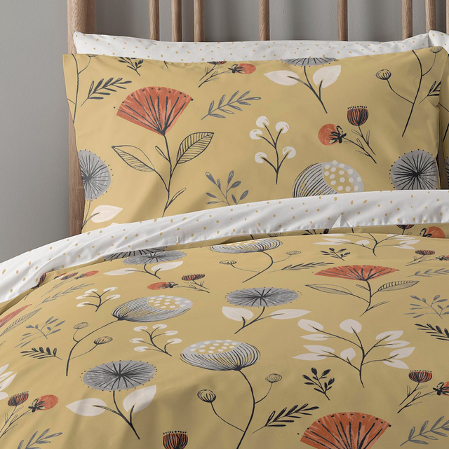 This stunning design is sure to add a statement to your bedroom with its stylised hand-painted flowers and simple spot reverse. Available in four beautiful and trend-led colourways. The teal colourway is bold yet sophisticated with a hint of blush pink and soft ochre.