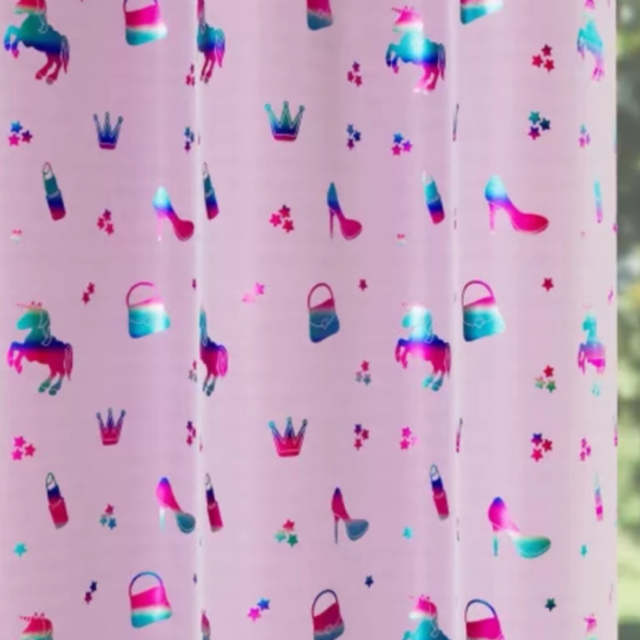 The Charm Metallic Print Kids Room Darkening Eyelet Ring Top Curtain Pair is a perfect combination of functionality and style. The darkening feature of the curtains can help to create a more comfortable and relaxing environment for your child, while the metallic print design adds a touch of elegance to the room. The eyelet ring top design of the curtains makes it easy to install and remove, making it a convenient choice for any parent.