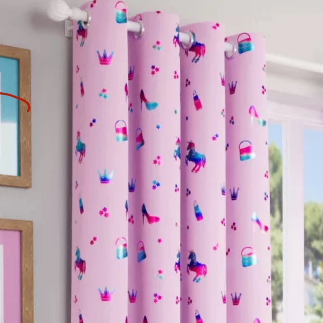 Enhanced Living Charm Room Darkening Thermal Pink Metalic Print Children’s Eyelet Curtains