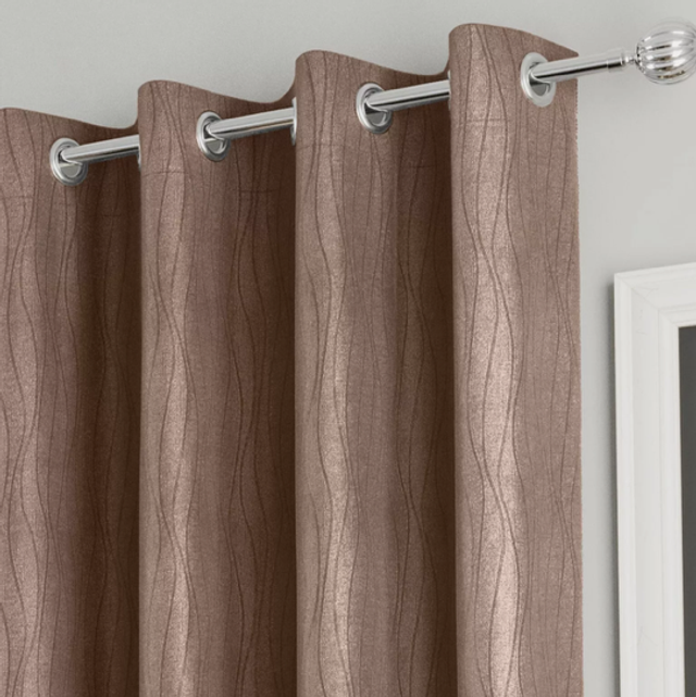 Goodwood is a triple weave room darkening embossed readymade with horizontal wave design and eyelet header.