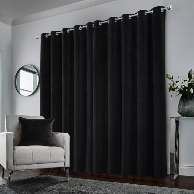 Enhanced Living Hampton Black 100% Blackout Velvet Readymade Eyelet Curtains