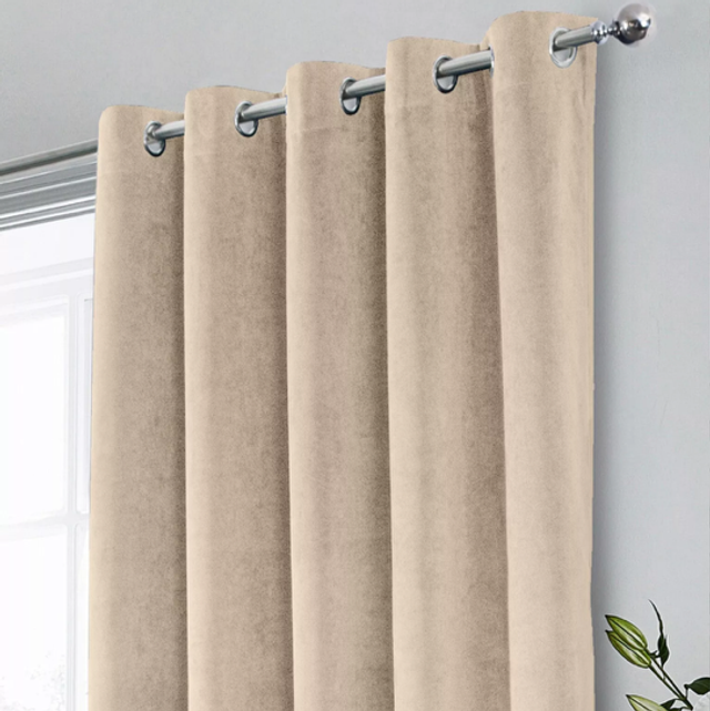 Enhanced Living Hampton Cream 100% Blackout Velvet Readymade Eyelet Curtains