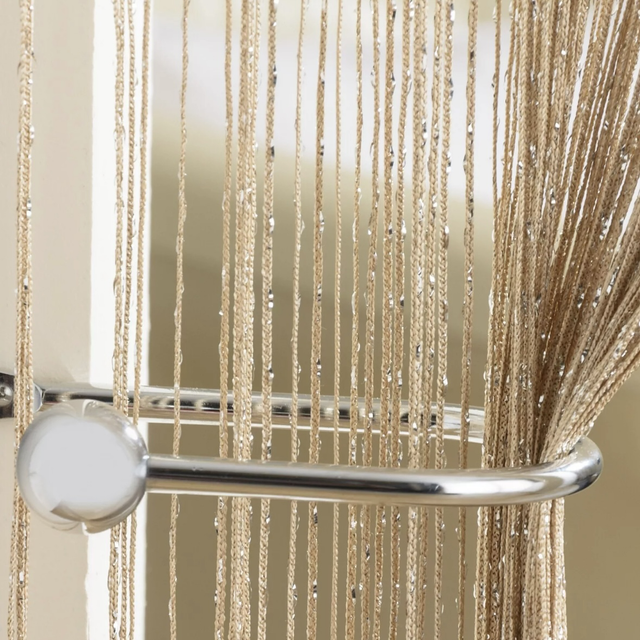 Crafted with high-quality metallic strings, this curtain panel captures and reflects light in a mesmerizing way, creating a subtle yet striking shimmer. The strings add depth and texture to your space, making it perfect for special occasions and everyday glamour.