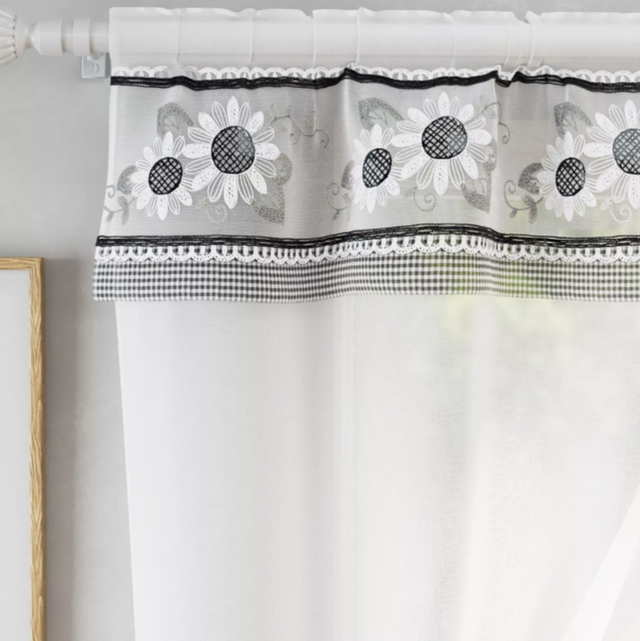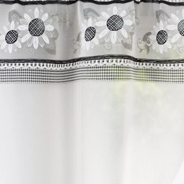 Brighten up your home with the charming Keswick window set. The design features embroidery and applique sunflower motifs, with matching tie backs. Crafted from high quality fabric for long lasting beauty and easy care. The window set provides light filtration allowing natural light to gently through whilst still providing privacy. The set includes an attached valance for easy installation using the rod pocket header.