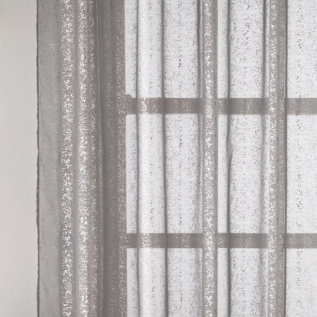 Pandora voile panel features a metallic shimmer print on a simple sheer ground, adding a touch of elegance and sophistication to any room. The shimmering accents, carefully applied to a sheer voile fabric, create a mesmerising interplay of light and texture that's sure to impress.